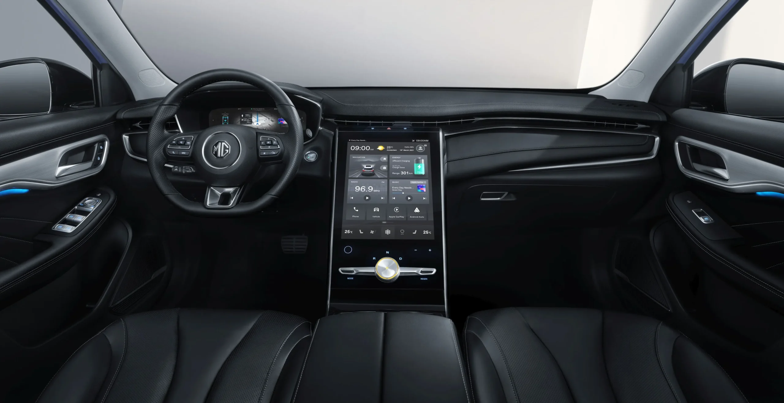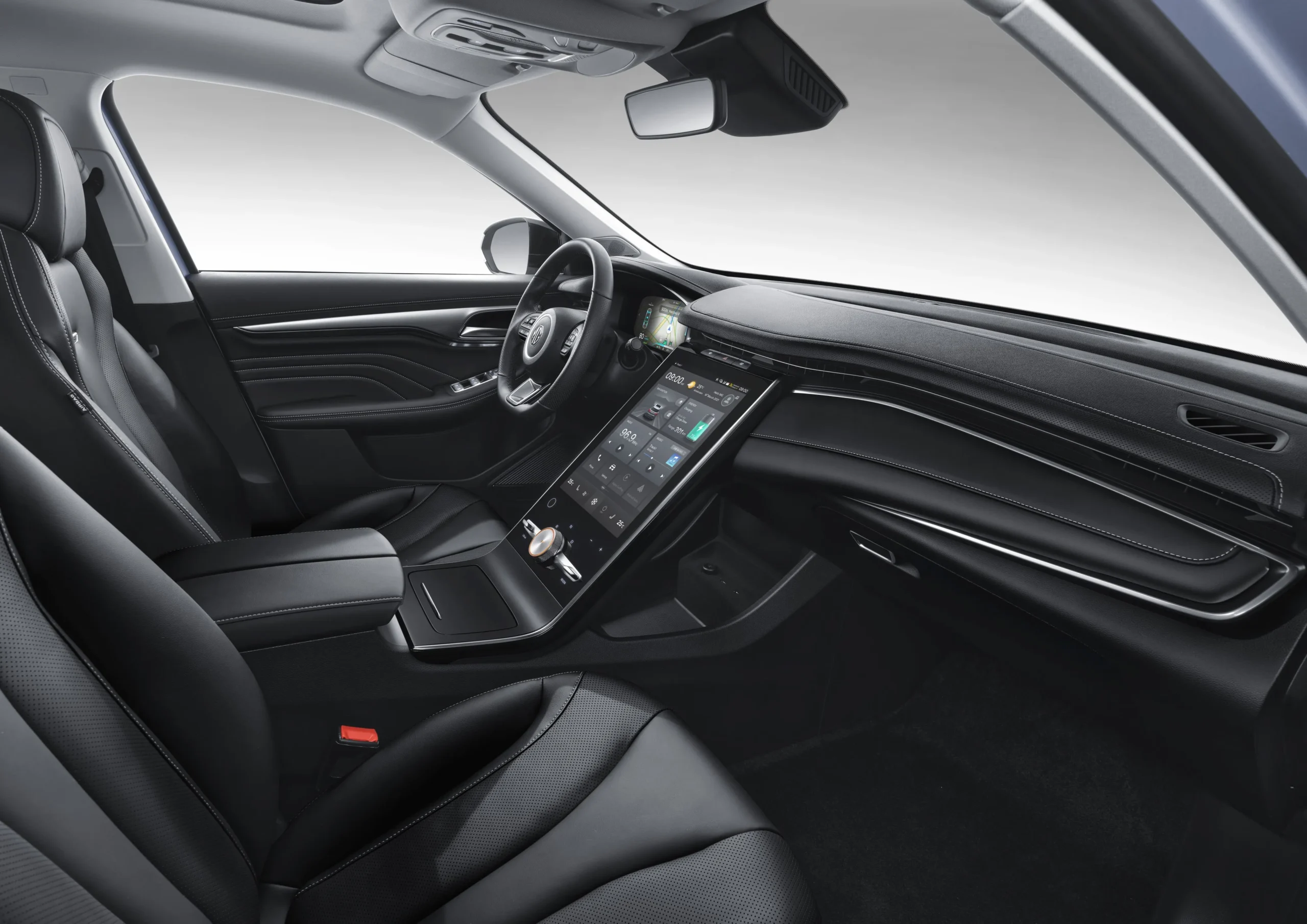 תא הנוסעים של ה-MG Marvel R מעוצב בסגנון מודרני ויוקרתי, עם דגש על טכנולוגיה ופונקציונליות. החומרים כוללים עור סינתטי איכותי, תאורה אמביינטית הניתנת להתאמה, ופסי כרום דקורטיביים.